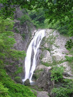 これぞ百選の滝、と納得です。 滝好きで、各地を巡っている方も この滝はぜひ目にしたほうが良いと思います。 滝の周辺は自由に移動がきき いろいろな場所から滝を眺める事が出来ます。 |